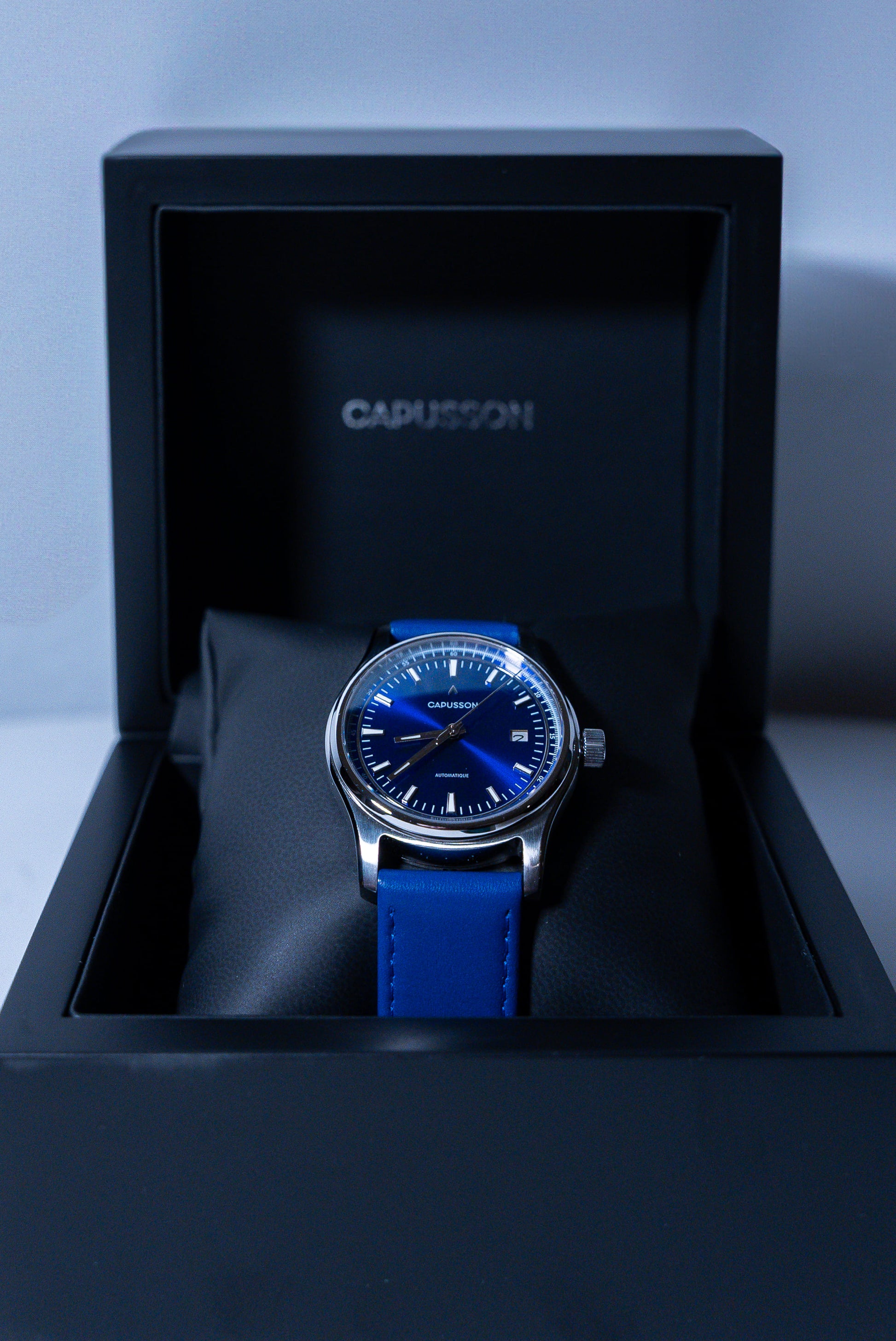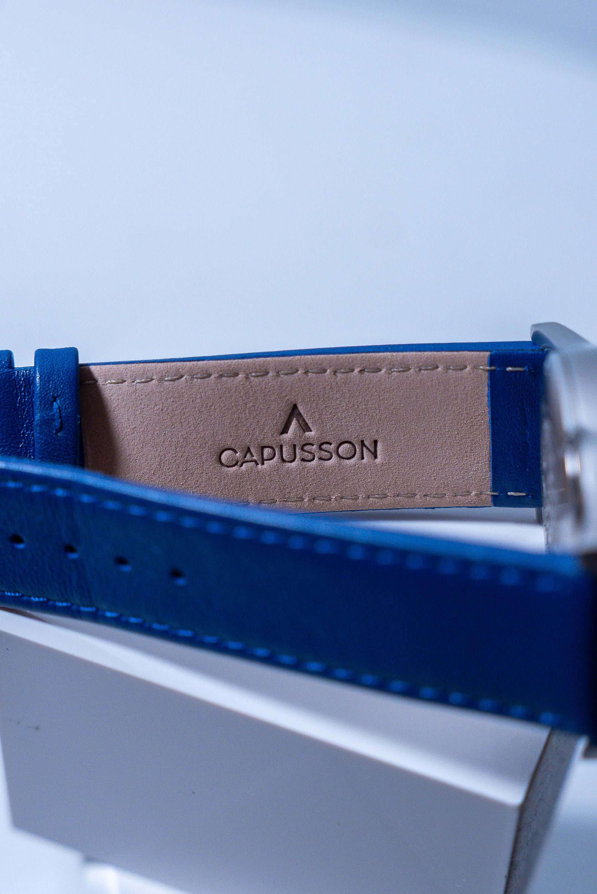 La finition est réalisée à la main par des maîtres polisseurs, ce qui confère à la montre cette signature lumineuse propre à Capusson.